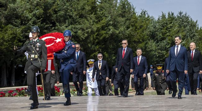 Cumhurbaşkanı Erdoğan, Yüksek Askerî Şûra üyeleriyle birlikte Anıtkabir’i ziyaret etti. Heyet, Anıtkabir ziyaretinin ardından Beştepe'ye gidecek.Atatürk'ün mozolesine ay yıldız motifli çelengin bırakılmasının ardından saygı duruşunda bulunuldu, İstiklal Marşı okundu.Merdivenin önünde fotoğraf çektirdikten sonra Misak-ı MillAnıtkabir Özel Defteri’ni imzalayan Cumhurbaşkanı Erdoğan, deftere şunları yazdı:
